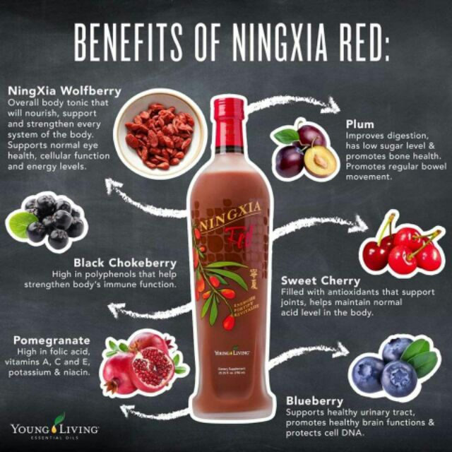 Also featuring plum aronia cherry blueberry and pomegranate juices and extracts ningxia red is packed with superfoods to support overall wellness.
